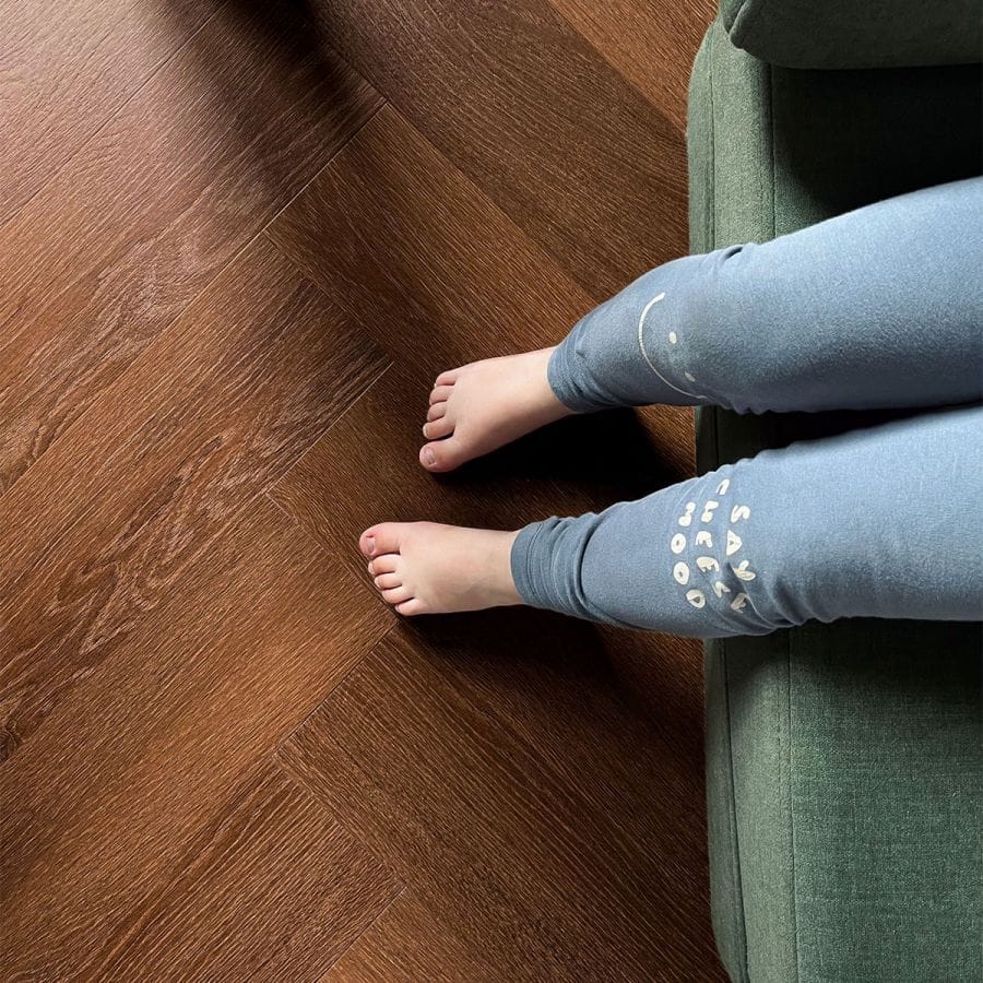 De Dawn herringbone, met zijn warme, donkerbruine tinten, is de belichaming van gezelligheid en luxe. Deze vloer zou prachtig zijn in een klassiek interieur met donkerhouten meubels of als contrasterend element in een modern, minimalistisch design.