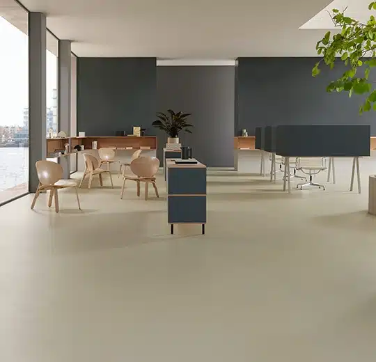 Het pure karakter van linoleum. De strakke look van Marmoleum Walton, met zijn gladde en minimalistische uitstraling en ingetogen materiaalexpressie, maakt hem tot de meest representatieve linoleumvloer.