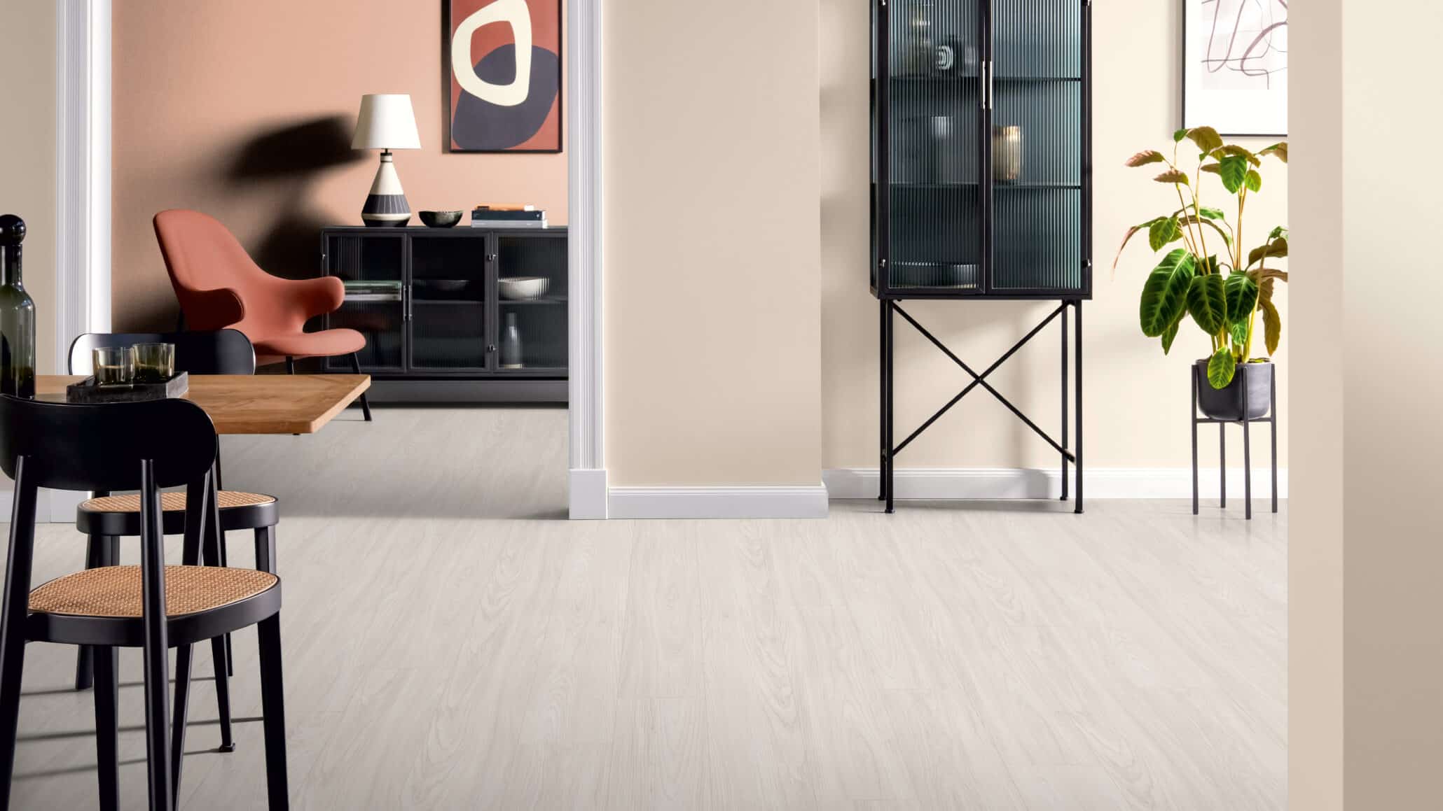 Van een gezellige woonkamer tot een lichte en uitnodigende hotelkamer, laminaat is een populaire vloerkeuze en universeel toepasbaar. Onze collectie bestaat uit planken variërend van 19,3 cm tot 32,7 cm breed. Een voelbare toplaag, met vgroef of zonder, rustiek of juist met meer noesten en leven in de plank? Met de diversiteit aan decoren en abstracte dessins kun je alle kanten op. Onze laminaatcollectie voorziet dan ook in vloeren, die passen bij alle denkbare interieurstijlen. Van hippe blokpatronen, klassieke plankpatronen, eigentijdse tegeldessins tot lichte Scandinavische ontwerpen.